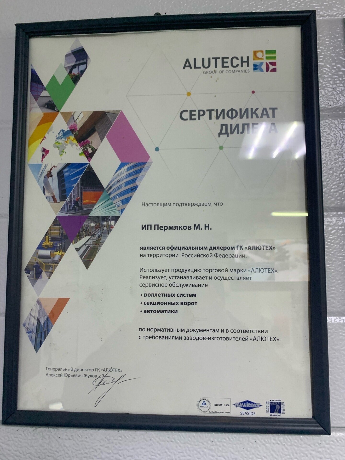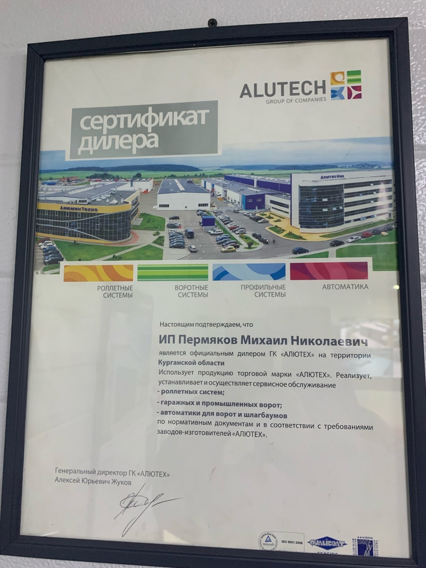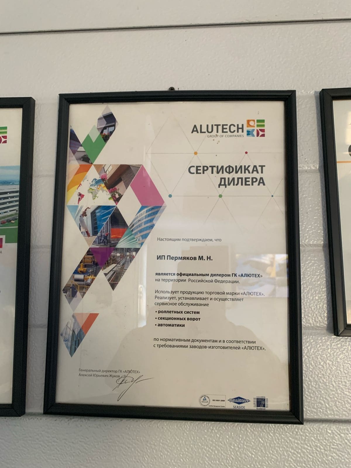 У нас есть вся необходимая документация, подтверждающая право работать с продукцией DOORHAN, ALUTECH